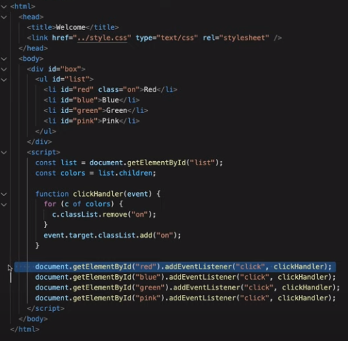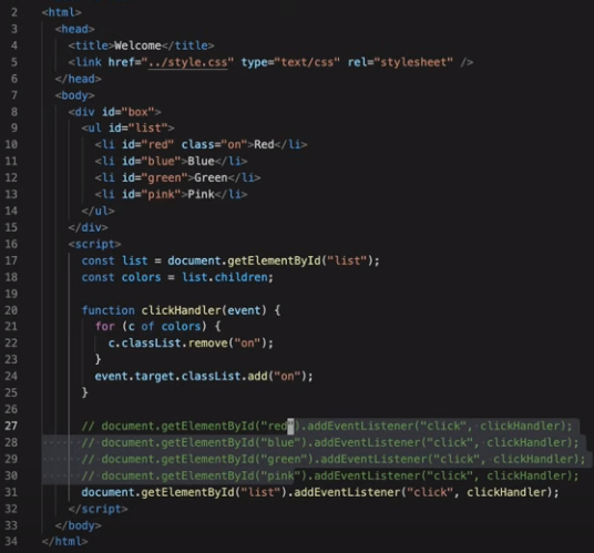 - currentTarget : 항상 ul을 가리킴 => 핸들러가 등록된 요소