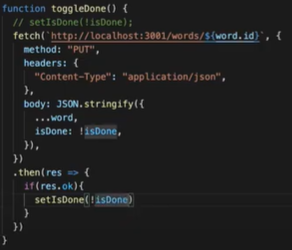 - ...word : 기존 데이터를 의미 isdone을 !isdone으로 바꿔줌