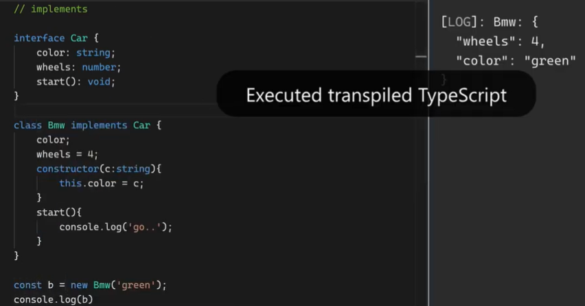 1. 타입스크립트에서 class를 작성할 때 멤버변수(메소드 밖에서 선언된 변수)는 미리 선언해줘야함 (ex/this.color의 color)
