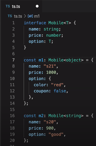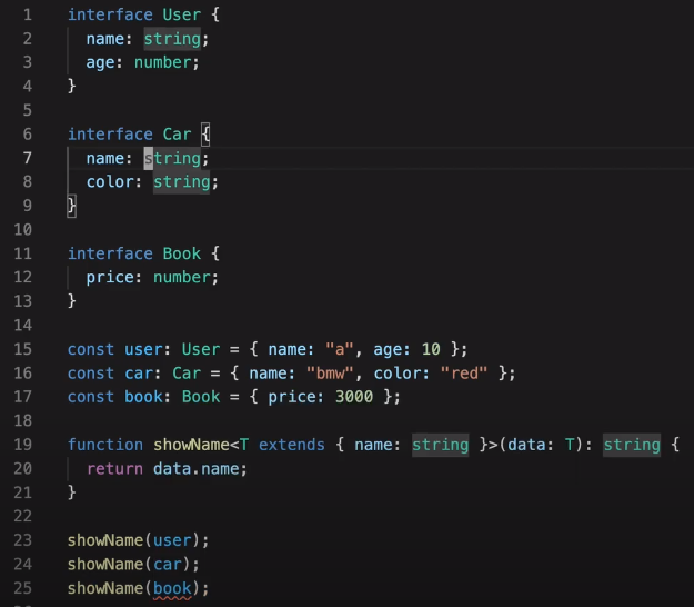 - T타입의 데이터가 올 건데 그 타입은 name이 string인 객체를 확장한 형태이다