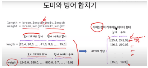 도미와 빙어 데이터 합치기