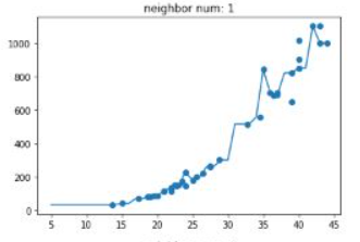 최근접 이웃의 문제점 : 50cm-1kg 농어를 1.5kg 이 아닌 1kg으로 판단한다?? → 위 그래프 : 다이아몬드가 이웃인데 아래 그래프인 이웃으로만 나타낸 그래프를 보면 길이가 차이가 나도 이웃들로 판