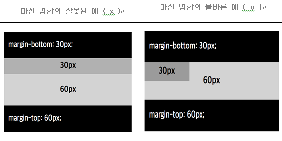 - 마진 병합은 수직 방향으로만 이루어지며, 좌우에 대해서는 일어나지 않음